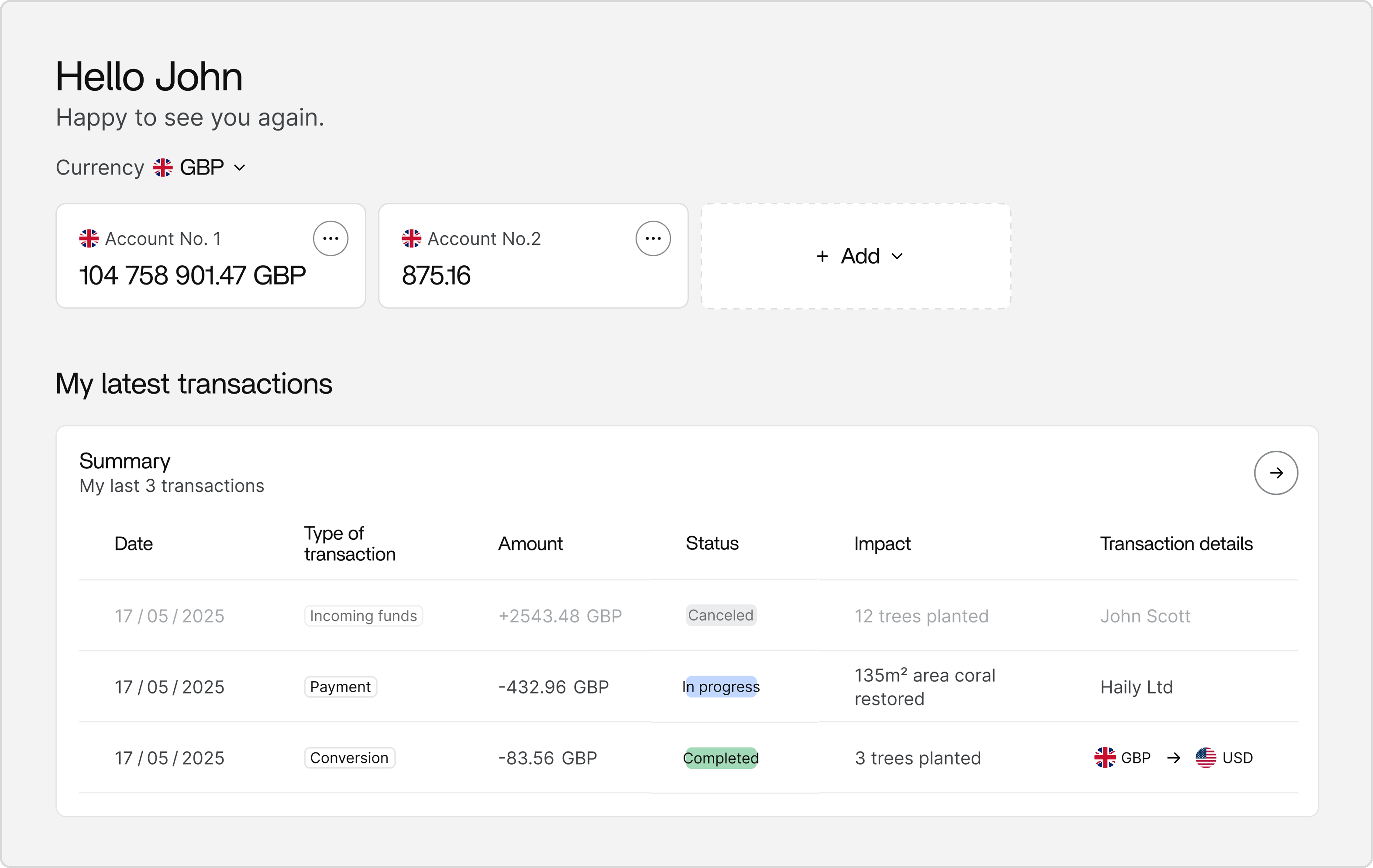 We don’t see the green transition as a constraint. It’s actually a driver for performance. Our solution makes your international payments easier while measuring their emissions and generating impact.