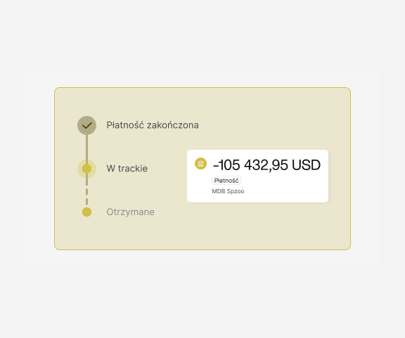 Ty i Twoi odbiorcy możecie śledzić każdą płatność w czasie rzeczywistym — od początku do końca — korzystając z prostego i intuicyjnego interfejsu. Zwiększ zaufanie i popraw relacje, pozwalając dostawcom w dowolnej chwili sprawdzić stan przelewów.